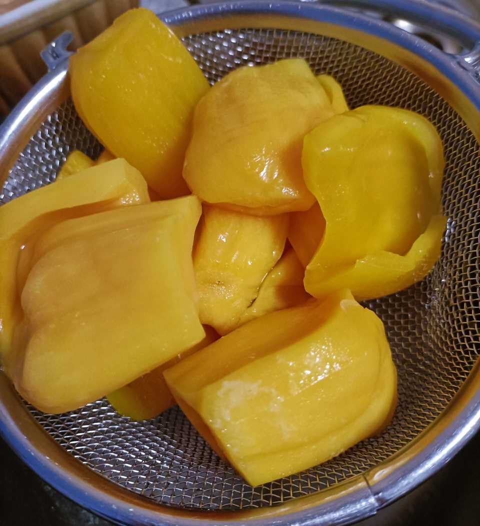 - Jackfruit goed laten uitlekken, afspoelen met koud water (om bliksmaak weg te krijgen).