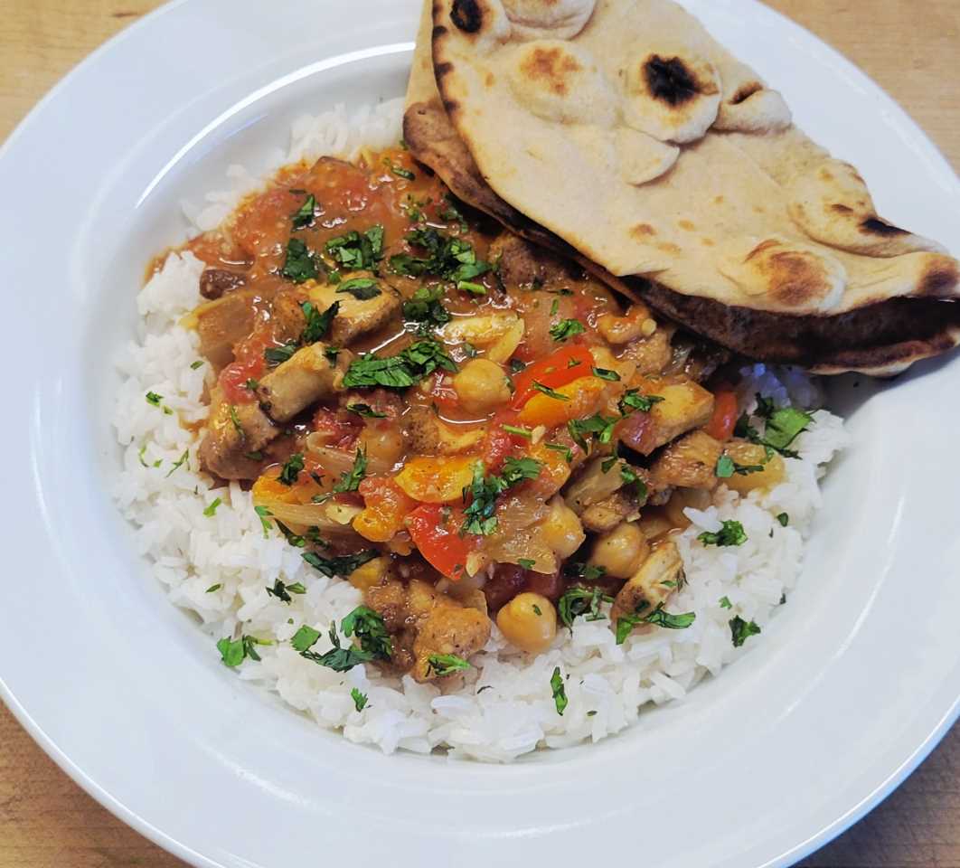 - 2 large boneless skinless chicken breasts, cut into 1-inch cubes