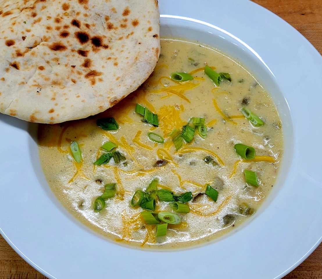 - Stir in the milk and chilies. Season with salt and pepper to taste. Continue to cook without boiling, for about 3 minutes, until everything has heated through.