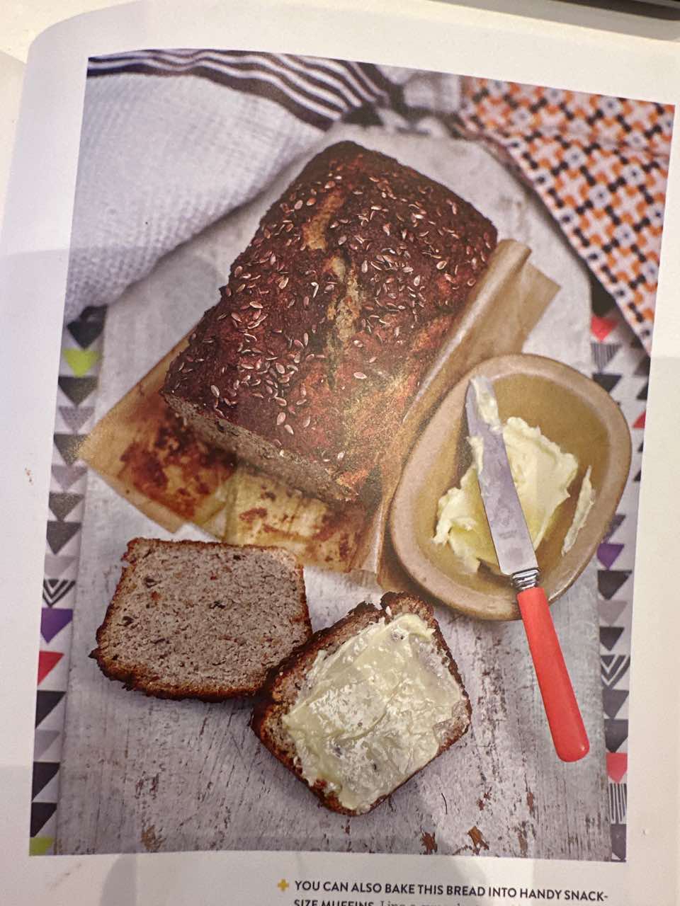 - Pour the mixture into the prepared tin, sprinkle with the whole flax and bake for 60-75 mins (55min for muffins). It's ready when a skewer inserted into the centre comes out dry; around 105°C internal temperature (100 for muffins). If your bread starts to look quite brown after the first 30 minutes, then cover the top with baking parchment until it has finished baking.