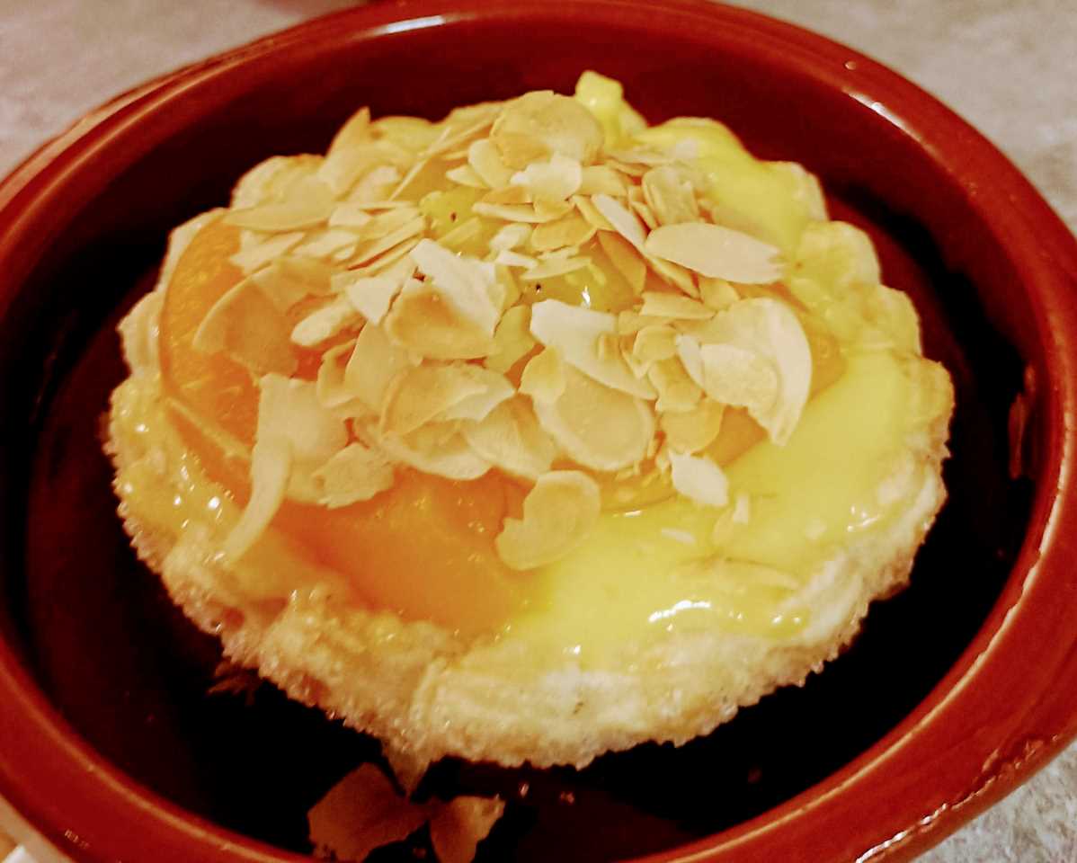 - Amandelschaafsel licht roosteren en op de tarteletjes strooien.