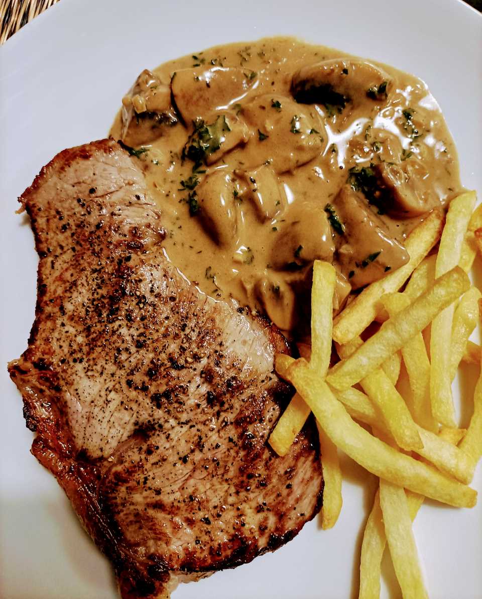 Entrecote met champignonroomsaus