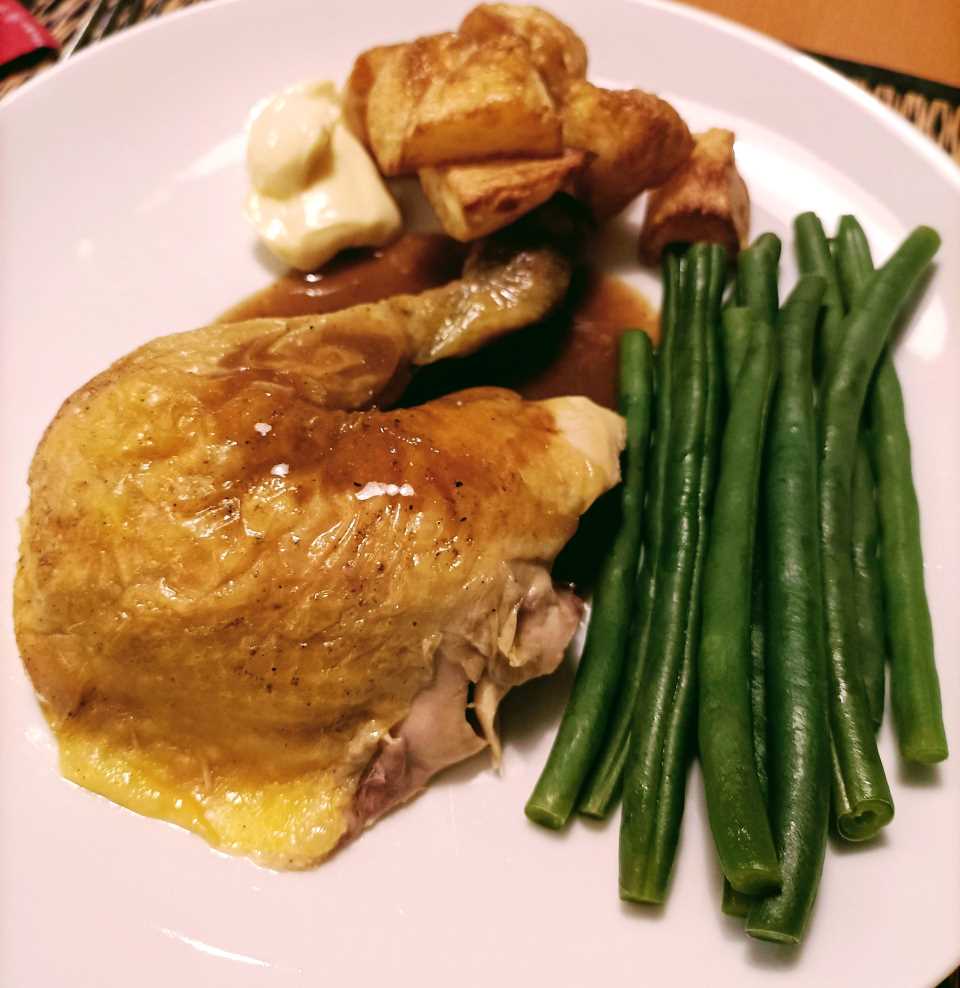 - Zo blijft de kip warm en komt de braadjus langzaam vrij.