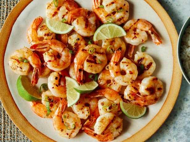 - 3. Heat a large grill pan over medium-high heat. Remove the shrimp from the marinade and put on a baking sheet lined with paper towels; don't worry if the coconut milk has hardened while it was in the refrigerator. In batches, cook the shrimp until lightly charred in spots on both sides and just cooked through, about 3 minutes total. Remove from the heat and transfer to a large plate.